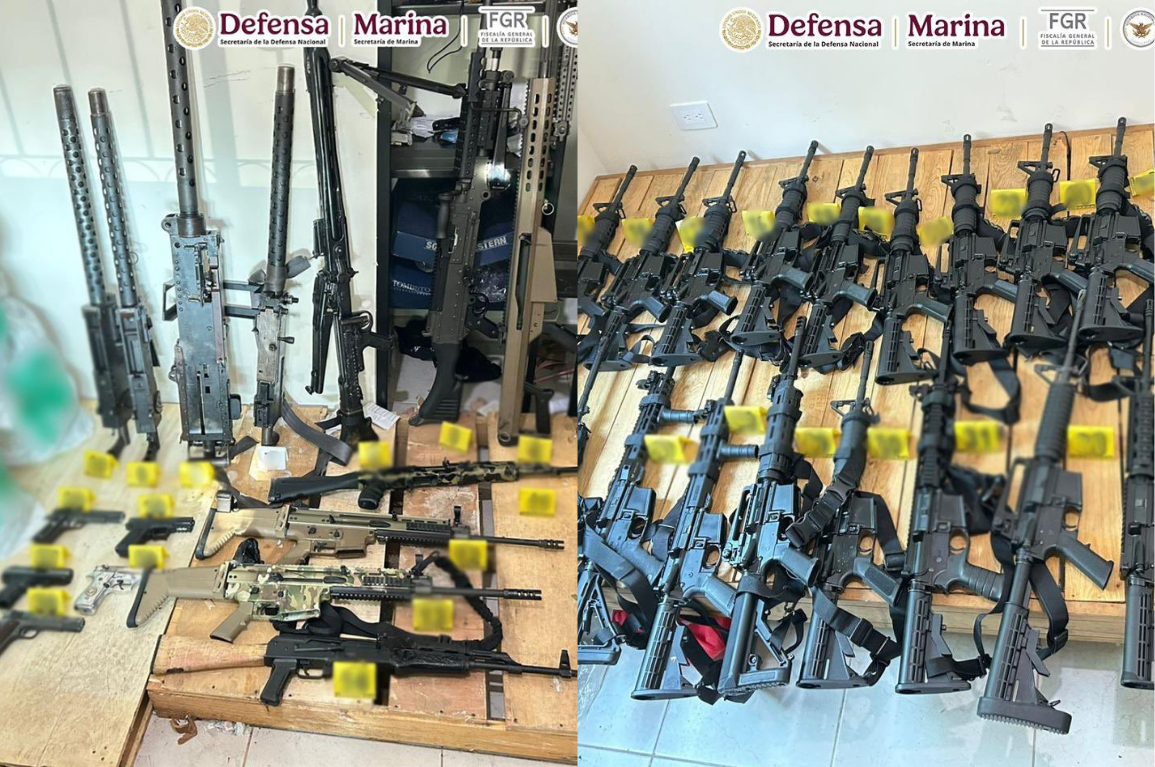 Aseguran arsenal y sustancias químicas en cateo en Culiacán