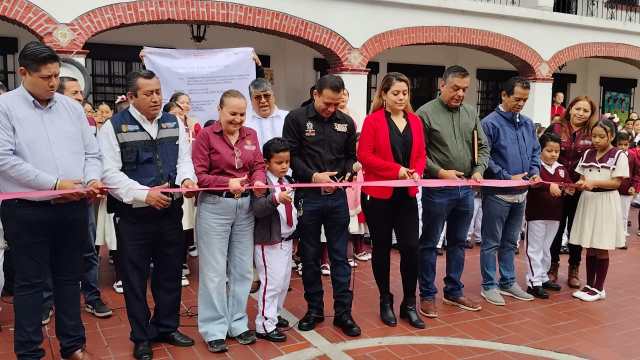 La jornada comenzó en la Secundaria Técnica Tlachco, en el barrio de la Panorámica, con la entrega de un auditorio escolar que servirá para actividades académicas, culturales y deportivas.