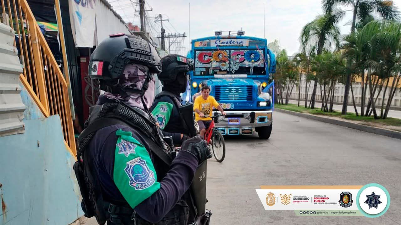 Policía Estatal refuerza vigilancia en transporte público de Acapulco para proteger a usuarios